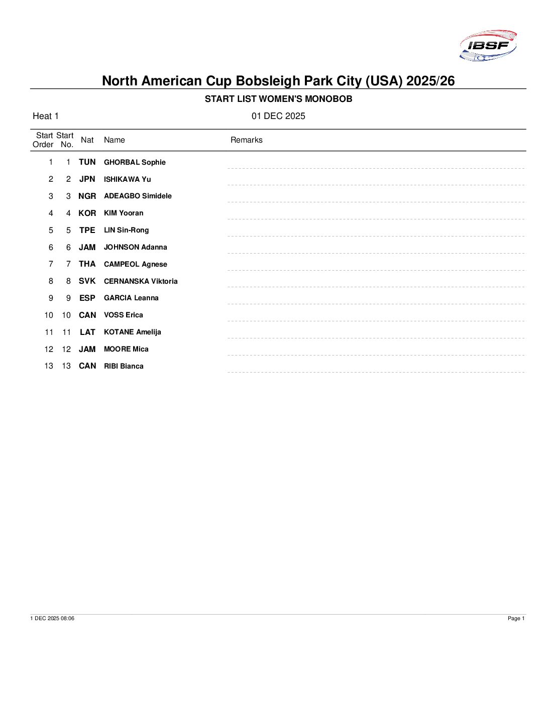 ← IBSF North American Cup & Junior Pan American Championships